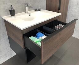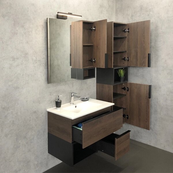 Мебель для ванной Comforty Франкфурт 75, дуб шоколадно-коричневый, белая раковина