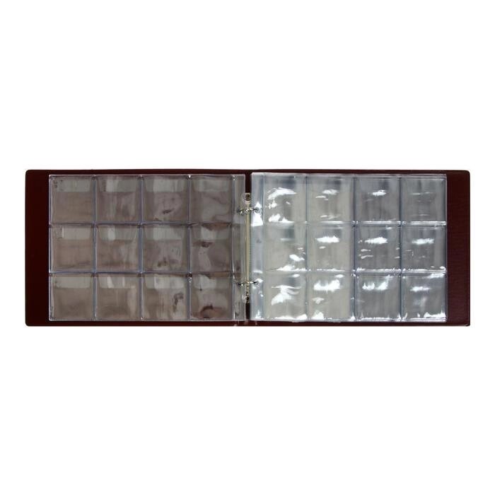 Альбом для монет горизонтальный на кольцах 230 х 170 мм Calligrata, 10 листов, на 120 монет, ячейка 48 х 52 мм, обложка