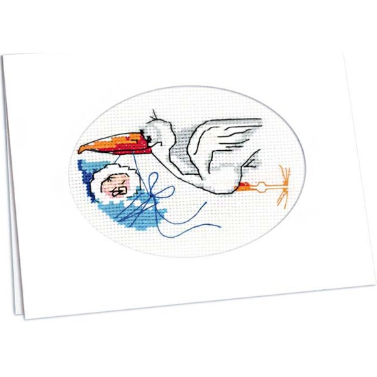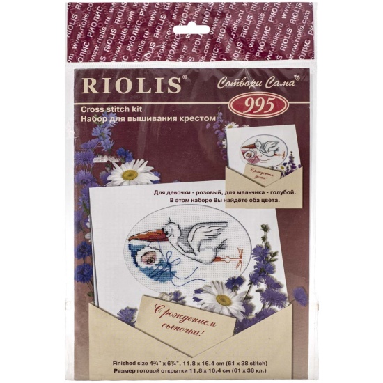 Набор для вышивания РИОЛИС 995 Открытка С новорождённым!, 11,8*16,4 смВ наборе: канва Aida 15 Zweigart белая, нитки мулине, игла, цветная схема, инструкция.