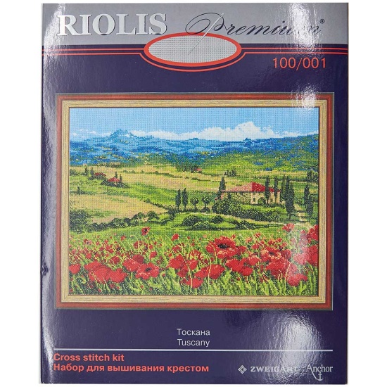 Набор для вышивания РИОЛИС 100/001 Тоскана 40*30смСчетный крест. Канва Zweigart белого цвета, мулине Anchor, цветная схема, игла. Набор в подарочной упаковке.