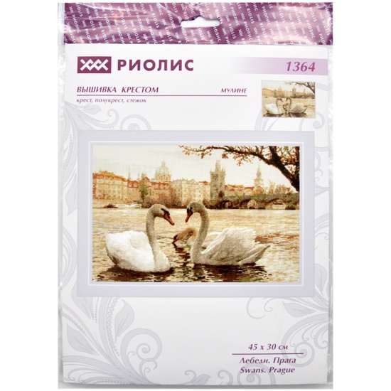 Набор для вышивания РИОЛИС 1364 Лебеди. Прага, 45*30 смВ наборе: канва Aida 14 Zweigart бежевая, нитки мулине Anchor, игла, цветная схема, инструкция.