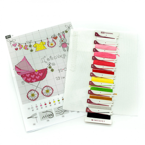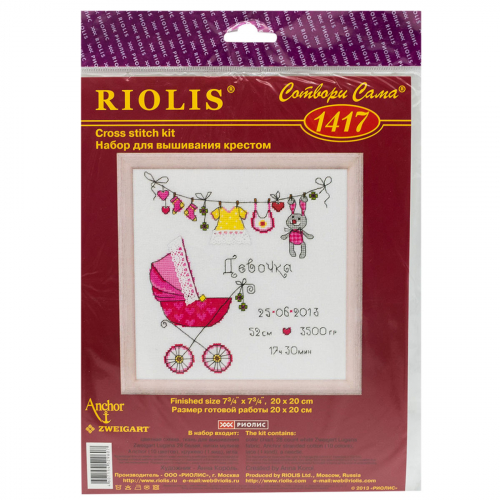 Набор для вышивания РИОЛИС 1417 С дочкой, 20*20 смВ наборе: канва T28 Brittney Lugana Zweigart белая, нитки мулине Anchor, кружево, игла, цветная схема, инструкция.Количество цветов: нитки - 10, кружево - 1.