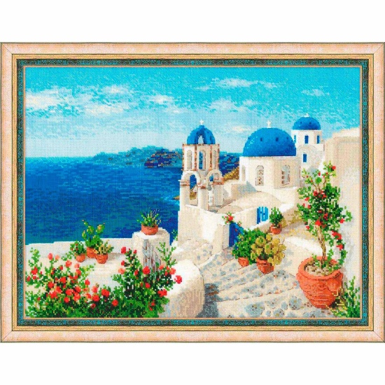 Набор для вышивания РИОЛИС 1644 Санторини 40*30смВ наборе: канва Aida 14 Zweigart белая, нитки мулине Anchor, игла, цветная схема, инструкция.