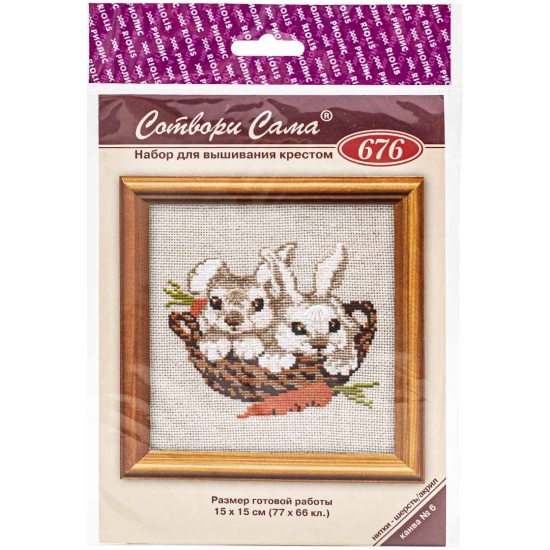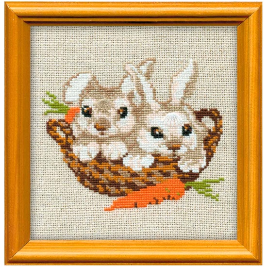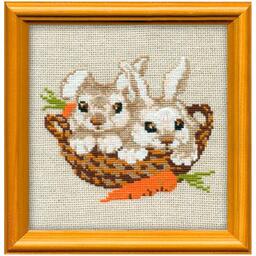 Набор для вышивания РИОЛИС 676 Зайцы, 15*15 смВ наборе: канва Aida 15 Zweigart льняная, нитки для вышивания шерстяные, игла, цветная схема, инструкция.