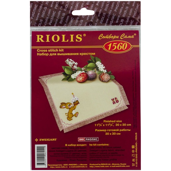Набор для вышивания РИОЛИС 1560 Салфетка. К светлому празднику, 30*30 смВ наборе: канва Zweigart Lugana 25 цветная, нитки мулине, игла, цветная схема, инструкция.