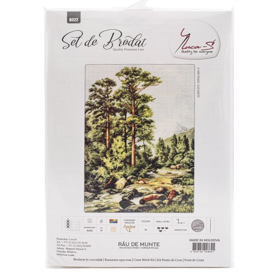 Набор для вышивания LUCA-S B522 Горная речка 34*47,5смВ упаковке: канва Aida 18 (Zweigart), мулине Anchor (100% мерсеризованный хлопок), игла, черно-белая символьная схема.Прилагается инструкция на русском языке.
