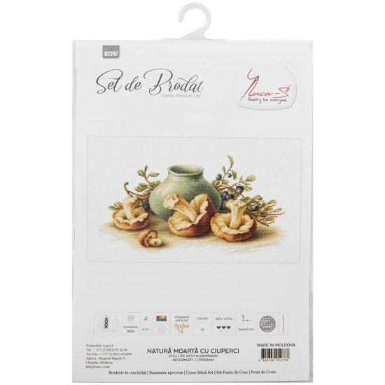 Набор для вышивания LUCA-S B2247 Натюрморт с грибами 39*20,5смВ упаковке: канва Aida 18 (Zweigart), мулине Anchor (100% мерсеризованный хлопок), игла, черно-белая символьная схема.Прилагается инструкция на русском языке.