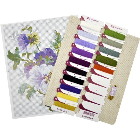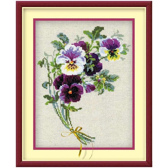Набор для вышивания РИОЛИС 1020 Букет анютиных глазок на льне, 24*30 смВ наборе: льняная канва Rustico Aida 14 Zweigart, нитки мулине шерстяные, игла, цветная схема, инструкция.