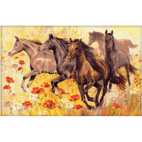 Набор для вышивания РИОЛИС 1064 Табун лошадей, 60*40 смВ наборе: канва Aida 14 Zweigart белая, нитки для вышивания (полушерсть, мулине), игла, цветная схема, инструкция.