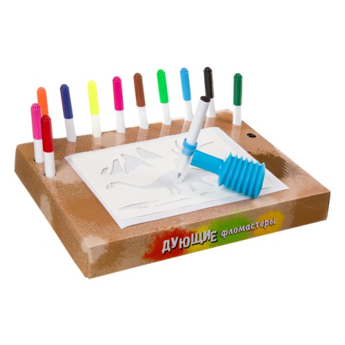 Набор для творчества BONDIBON ВВ4109 Дующие фломастеры. Рисуем динозавров. 8 трафаретов для рисунков