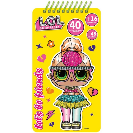 Скетчбук L.O.L. SURPRISE! Neon Q.T.Скетчбук L.O.L. Surprise! NEON – прекрасный подарок для юной модницы, поклонницы куколок LOL. Благодаря фешн-эскизам, трафаретам и ярким наклейкам, девочка сможет создавать стильные наряды для любимых персонажей. Она будет учиться сочетать цвета и совершенствовать свое чувство вкуса.Занятия со скетчбуком способствуют развитию креативного мышления и тренировке мелкой моторики.В наборе:скетчбук;16 трафаретов;48 наклеек;40 листов для фэшн-эскизов.Как работать с набором:1.Наложите трафарет на эскиз куколки и с помошью карандашей или фломастеров нарисуйте ей красивый наряд.2. Создайте интересный образ с помощью наклеек - цветных и черно-белых, которые можно также раскрасить.3. Завершив дизайн наряда для куколки, украсьте эскиз наклейками - звездочками, сердечками и тд.Работа со скетчбуком помогает ребенку максимально проявить свои творческие способности.
