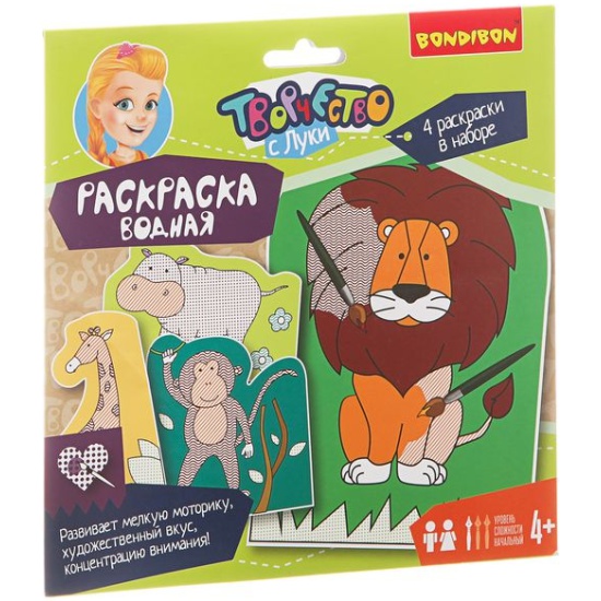 Водная раскраска BONDIBON ВВ1848 ЖивотныеМагическая чудо-раскраска! Всё, что нужно - провести по изображению прозрачным маркером или влажной кисточкой, и цвет, как по волшебству, проступит на поверхности листа! Такие раскраски не оставят малыша равнодушным, ведь угадать, какого цвета будет зверушка, нельзя!