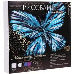 Набор для творчества ШКОЛА ТАЛАНТОВ Рисование нитью на холсте. Голубая бабочка, 30х30 см 6897927 ШКОЛА ТАЛАНТОВ