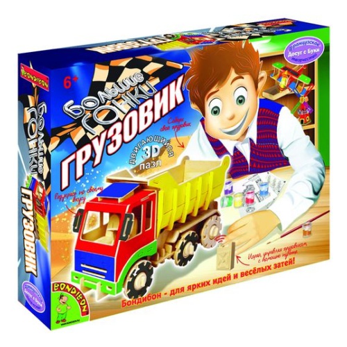 Набор для творчества BONDIBON ВВ1209 Движущийся деревянный 3D пазл Грузовик "Большие гонки"