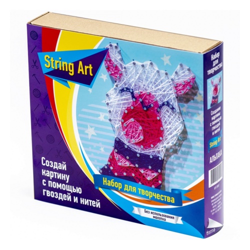Стринг арт STRING ART LAB П007 АльпакаОснование: мягкоеУровень сложности: 1 — простойЧто такое STRING ART? Это модное направление изобразительного искусства с использованием нестандартного дуэта материалов — гвоздей и нитей.Гвозди закрепляются на специальном основании. С помощью нитей происходит заштриховка будущего творения.Необычная комбинация материалов в сочетании с креативными художественными идеями позволяет достичь потрясающего эффекта.Работа в этой технике полезна и интересна детям. Она развивает мелкую моторику и творческое мышление, а также усидчивость.