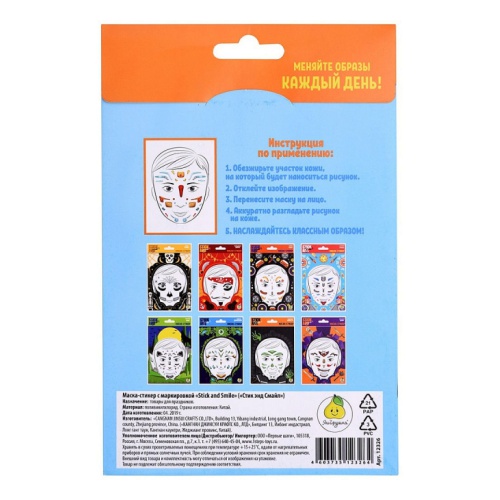 Маска-стикер для лица STICK AND SMILE 12326 Грозный индеецСтать на денек роботом или волшебной феей? Легко! С маской-стикером Stick and Smile личико вашего ребенка будет сиять от радости и появившейся возможности быстро и просто перевоплотиться в понравившийся образ.Больше не нужно мучиться с нанесением аквагрима и продумыванием образа!Широкий ассортимент масок позволит ребенку выбрать свой уникальный стиль. Фантастические, сказочные и даже этнические мотивы предложенных вариантов заставят изрядно поломать голову вопросом «А кем сегодня хочешь быть ты?»Инструкция по применениюОбезжирьте участок кожи, на который будет наноситься рисунок.Отклейте изображение.Перенесите маску на лицо.Аккуратно разгладьте рисунок на коже.Наслаждайтесь классным образом!