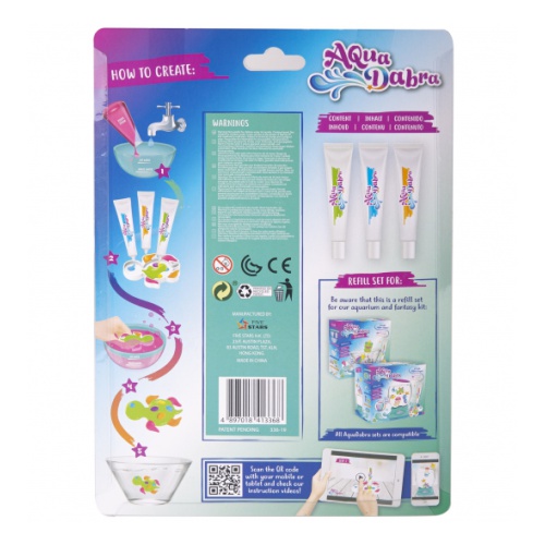 Набор AQUA DABRA 336-19 Волшебные краски, 3 шт.В наборе: 3 Aqua Dabra краски.Компактная упаковка размером 18 х 25,5 см.Для детей от 5 лет.У вас закончились краски или нужны дополнительные цвета к наборам линейки Aqua Dabra? Тогда этот набор обязательно пригодится вам! В него входят три разные краски: зелёный, голубой, оранжевый.Дети очень любят экспериментировать. С помощью набора они смогут создавать химическую реакцию из красок и «магической воды». В результате чего за несколько секунд жидкая краска превратится в пластичные 3D-фигурки. Такое превращение впечатлит и обязательно приведёт в восторг любого ребёнка!Творческий набор развивает креативные способности, фантазию.
