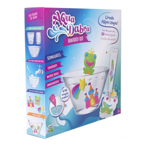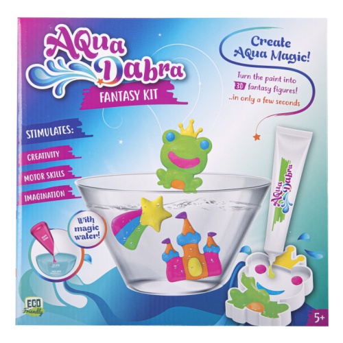 Мини-набор AQUA DABRA 334-19 Принцесса-лягушкаВолшебные краски в руках ребёнка превратятся в разноцветные 3D-фигурки!В наборе:3 Aqua Dabra краски;1 бутылочка с «магической водой»;3 формочки;1 тарелочка для магической воды.Компактная упаковка размером 28 х 6 х 28 см. Для детей от 5 лет.Всем детям нравятся сказки! Создать разноцветные фигурки из любимой сказки о царевне-лягушке помогут «Волшебные краски» Aqua Dabra. Нужно совсем немного старания и терпения. Заполняем формочки краской и опускаем в «магическую воду». Затем ждём! Всего за несколько секунд жидкая краска превратится в пластичные 3D-фигурки принцессы-лягушки, замка и яркой звёздочки. Во время игры ребенок сможет проявить фантазию и креативное мышление, ему будет интересно поэкспериментировать с цветами.Игра с набором для творчества погрузит ребенка в удивительный мир, а созданные своими руками новые игрушки ещё долго будут радовать вашего малыша!Когда у Вас закончатся краски и вода, всегда можно приобрести дополнительные наборы: «Волшебные краски» 6 шт. (артикул 333-19), «Волшебные краски» 3 шт. (артикул336-19), «Магическая вода» (артикул 337-19).