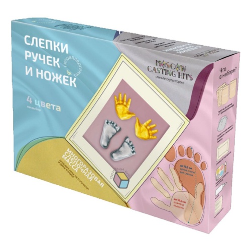 Набор MOSCOW CASTING KITS zk-091 Слепки ручек и ножекУникальный набор «Слепки ручек и ножек» создан, чтобы на долгие годы сохранить теплую память о мимолетном периоде младенчества вашего ребенка.Следуя простому и увлекательному процессу, вы сможете в домашних условиях создать объемные слепки ручек и ножек вашего малыша, разукрасить их в понравившийся цвет и составить уникальную композицию, разместив в рамочке.Все ингредиенты и предметы для создания композиции уже есть в наборе, остается только наслаждаться творческим процессом и радоваться результату.