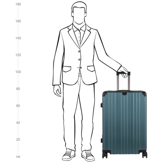 Чемодан на четырех прорезиненных колесиках. Чемодан выполнен из нового легкого материал PC (Поликарбонат). В отличие от ABS-пластика чемоданы из PC можно эксплуатировать при очень низких температурах. PC (Поликарбонат) обладает высокой прочностью, эластичностью и высокой ударостойкостью. Особенностью чемоданов из PC (Поликарбонат) является малый вес. Внутри подкладка из полиэстра. Одна секция чемодана с креплением резинками для одежды. Вторая секция застегивается на молнию для удобства упаковки вещей. Есть кодовый замок TSA.