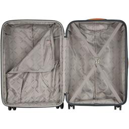 Чемодан Спиннер большой 28". Основное отделение разделено на две части. Одно имеет фиксирующие ремни, второе на молнии. Выдвигающаяся ручка расположена внутри корпуса чемодана, что способствует большей прочности и защите от ударов при разгрузке/погрузке чемодана. Чемодан можно увеличить в объеме с помощью раздвижной молнии. Выдвигающаяся ручка фиксируется в двух положениях. Есть кодовый замок. Надежные 4 колеса диаметром 4.8 см.
