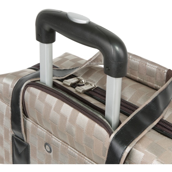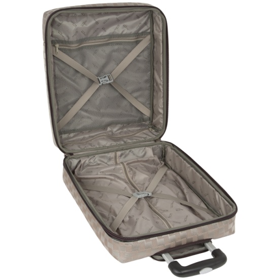 Лёгкий чемодан П7090 выполнен из полиэстера и предназначен для частого использования. Данный вид ткани обладает высокой прочностью и стойкостью к истиранию. Размер чемодана подходит для провоза багажа в салоне самолёта и проходит в рамку-калибратор 55x40x20. Чемодан имеет прочный проволочный каркас и закрывается на молнию. У чемодана есть два колеса утопленных в корпус, выдвижная ручка и две ручки сверху сумки. Внутри- одно основное отделение с ремнями-фиксаторами для вещей и карман-сетка на молнии.