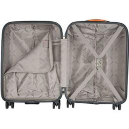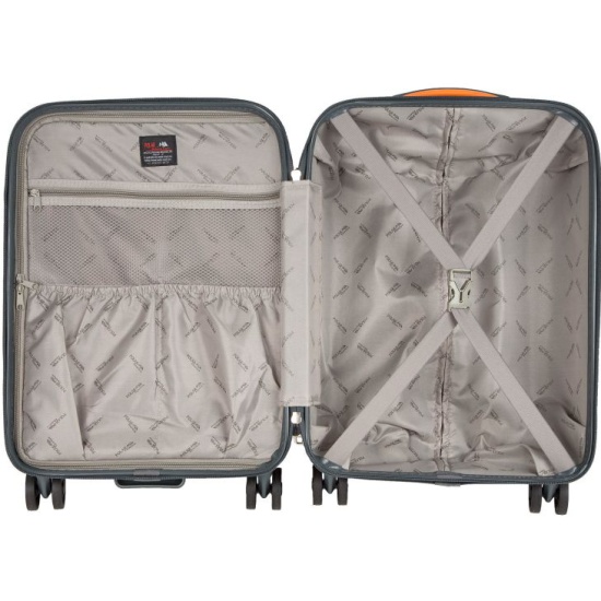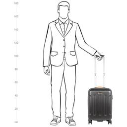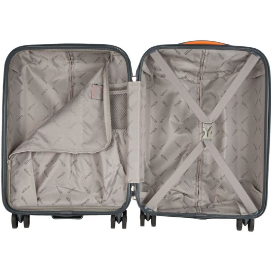Чемодан Спиннер малый 20". Основное отделение разделено на две части. Одно имеет фиксирующие ремни, второе на молнии. Выдвигающаяся ручка расположена внутри корпуса чемодана, что способствует большей прочности и защите от ударов при разгрузке/погрузке чемодана. Выдвигающаяся ручка фиксируется в двух положениях. Есть кодовый замок. Надежные 4 колеса диаметром 4.8 см.