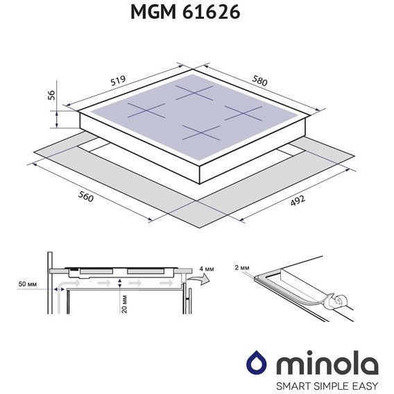 • Размеры для встраивания 56х5.6х49.2см (ШхВхГ)