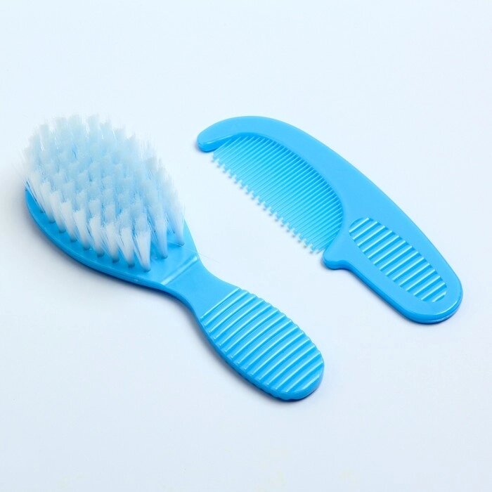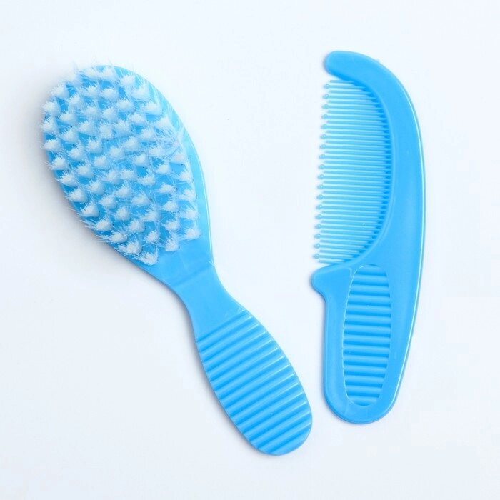 Расчёска детская + массажная щётка для волос, от 0 мес., цвет голубой, рисунок МИКС