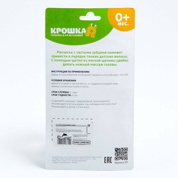 ДополнительноНабор подходит для первых волос малыша. Закруглённые зубчики расчёски и мягкий нейлоновый ворс не травмируют нежную кожу ребёнка.Размер и форма предметов подобраны с учётом возрастных особенностей карапуза. Ручки удобно ложатся в маленькую ладошку.Изделия не содержат бисфенол А. Безопасность для здоровья малыша подтверждена сертификатом качества..