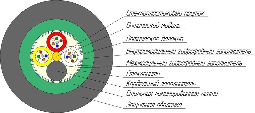 Кабель оптический SM 8 ОВ канализация 2.7кН гофролента МК облегчен ОКЛм-0,22-8П 2,7кН