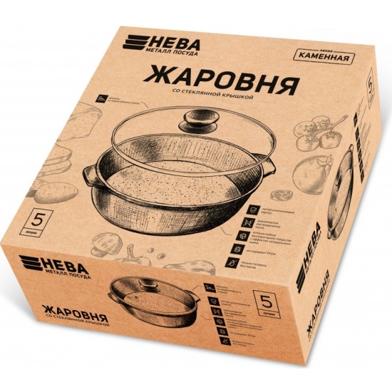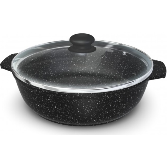 НЕВА МЕТАЛЛ ПОСУДА Жаровня со стекл. крышкой 3л «Каменная» Черный гранит НМП 186530