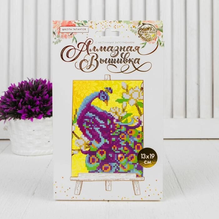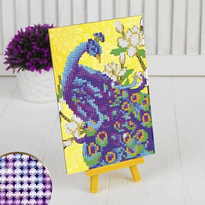 Алмазная мозаика на подставке «Павлин», размер 13 х 19 см. Набор для творчества