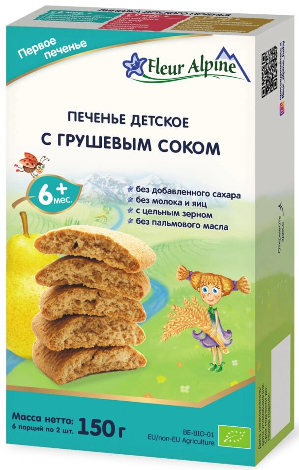 Печенье Fleur Alpine Organic Детское Первое с грушевым соком с 6 месяцев 150г
