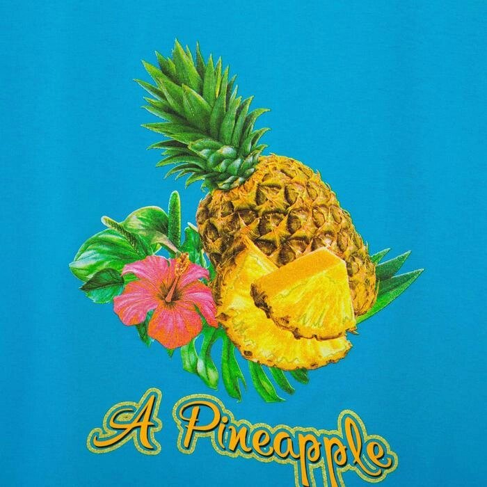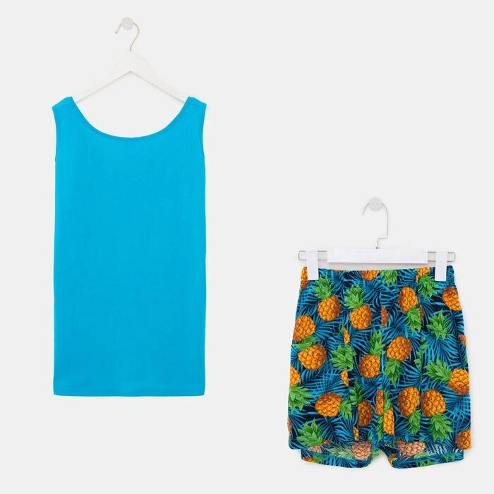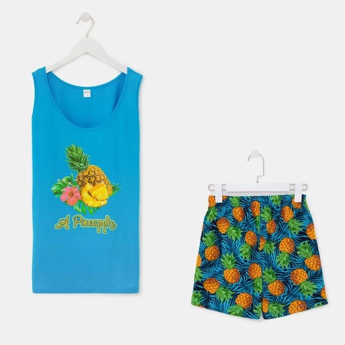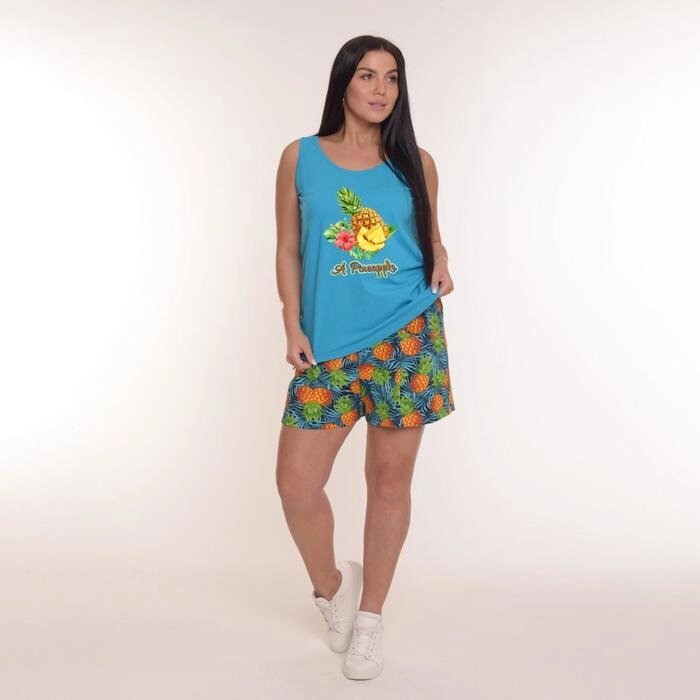 Комплект женский (майка, шорты), цвет голубой/ананасы, размер 46