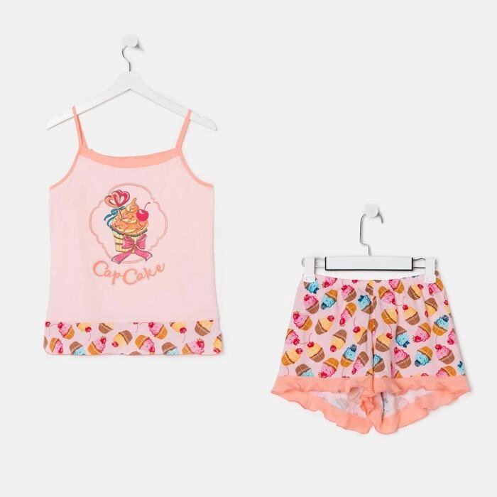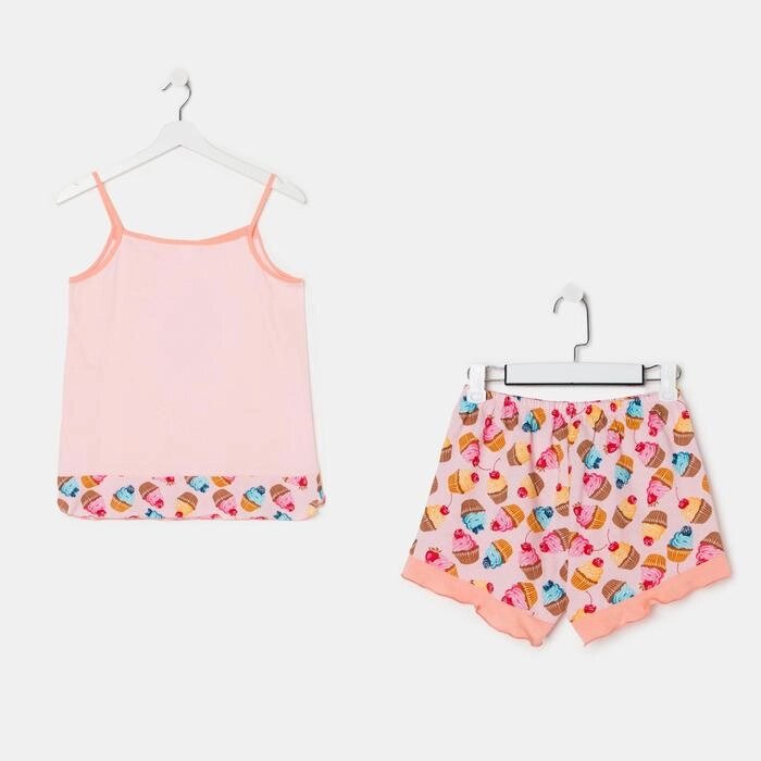 Комплект женский (майка, шорты), цвет розовый/пирожные, размер 44