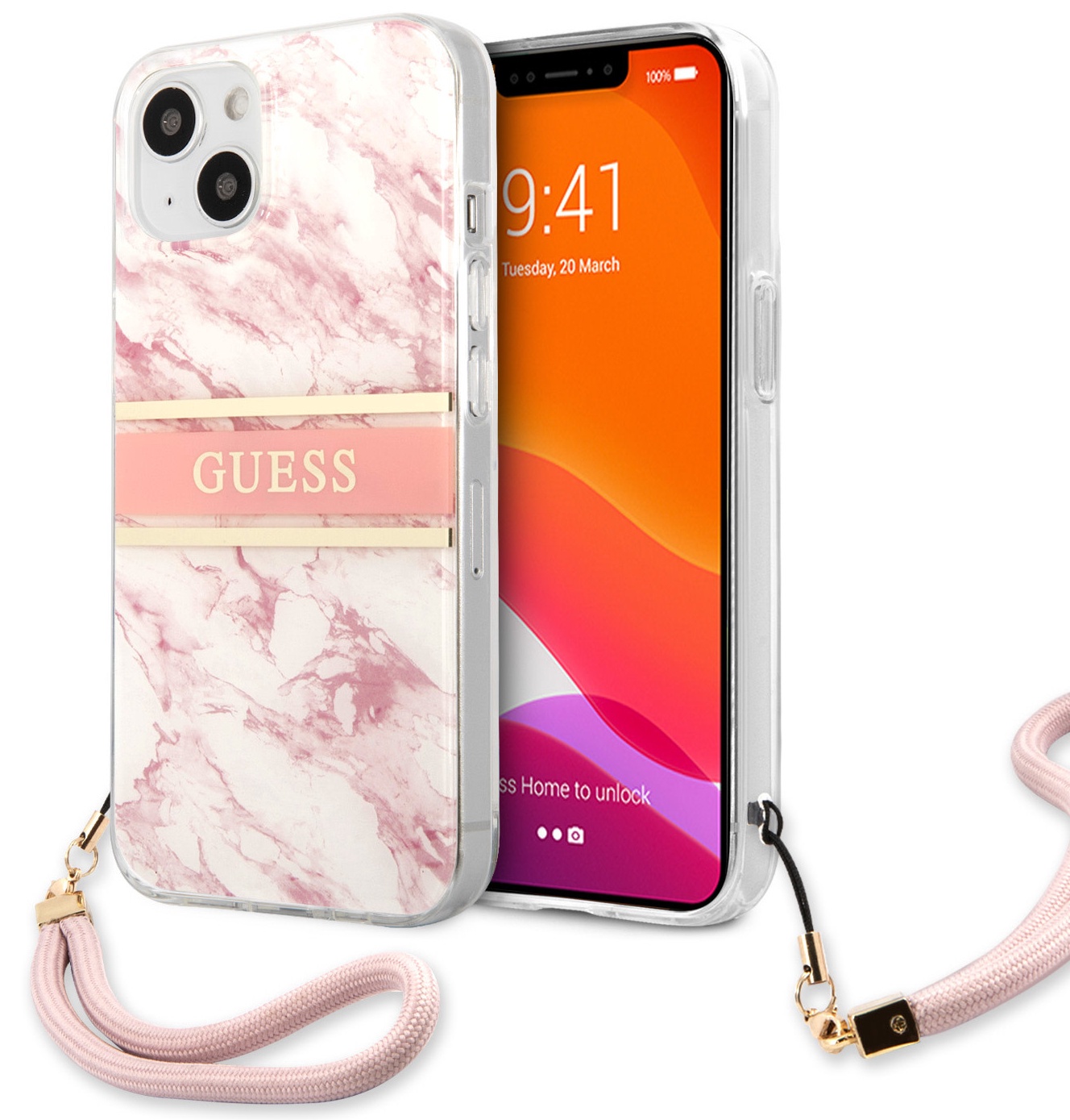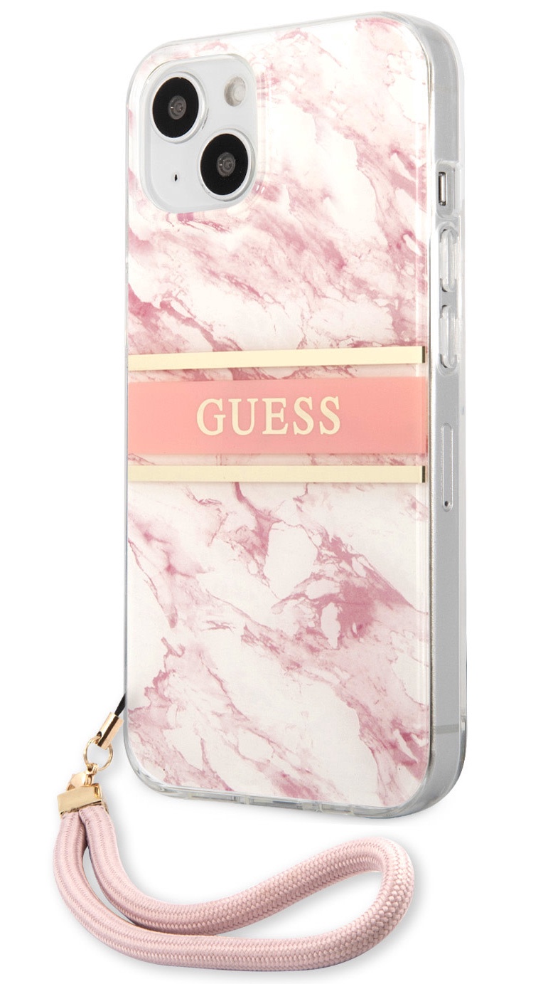 Dėklas CG Mobile Guess Marble Design With Strap iPhone 13 mini, apple iphone 13 mini, rožinė