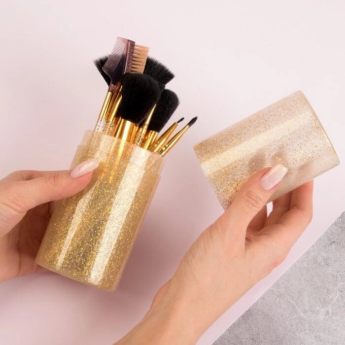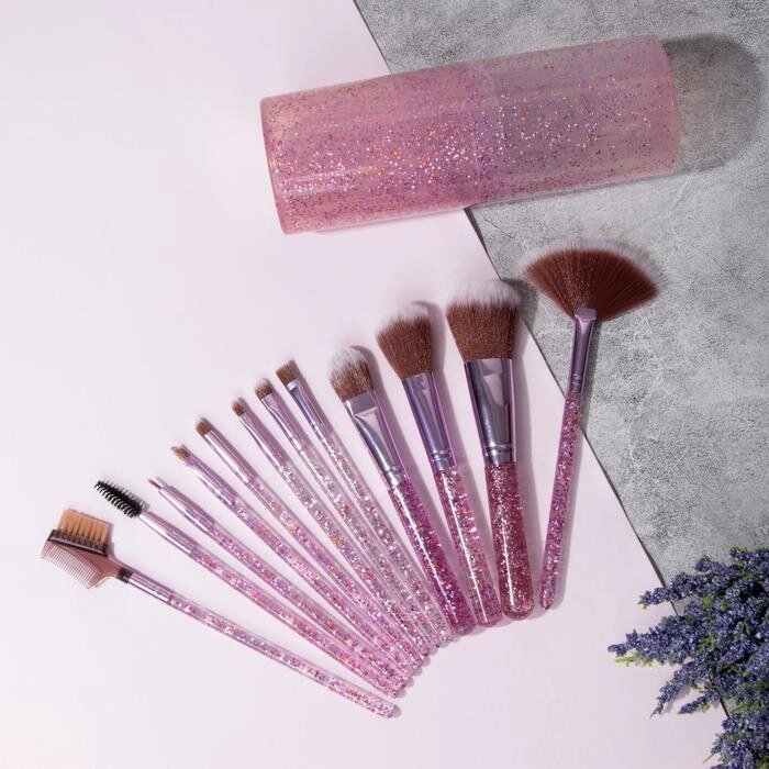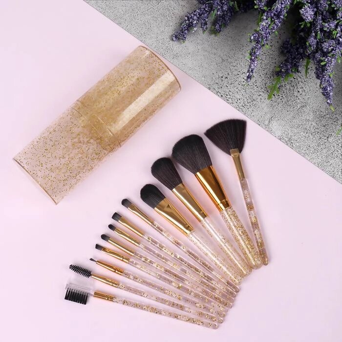 Набор кистей для макияжа, 12 предметов, футляр, цвет МИКС