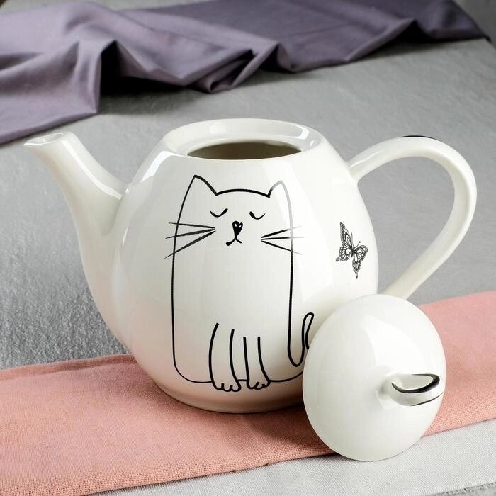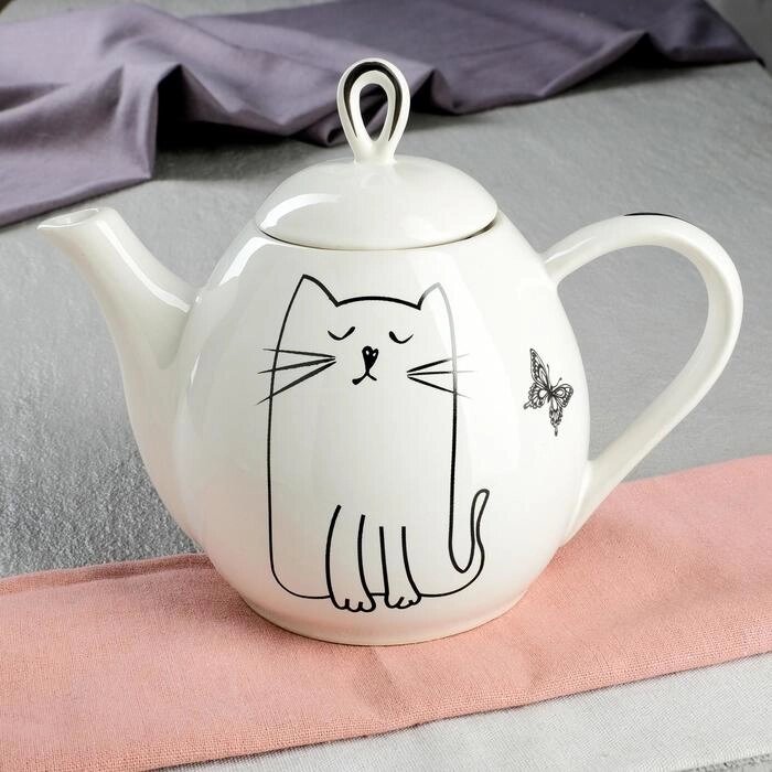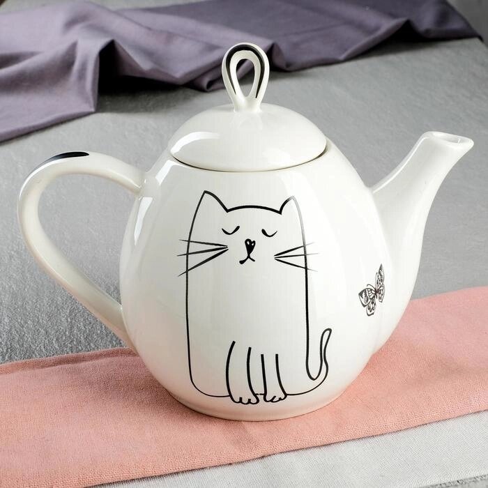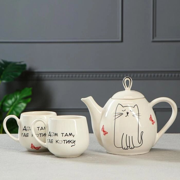 Чайный набор 'Петелька'кот и бабочка, 3 предмета чайник 1,1 л и 2 чашки 0,38 л, микс