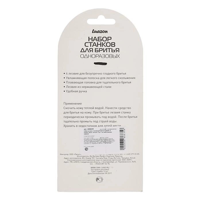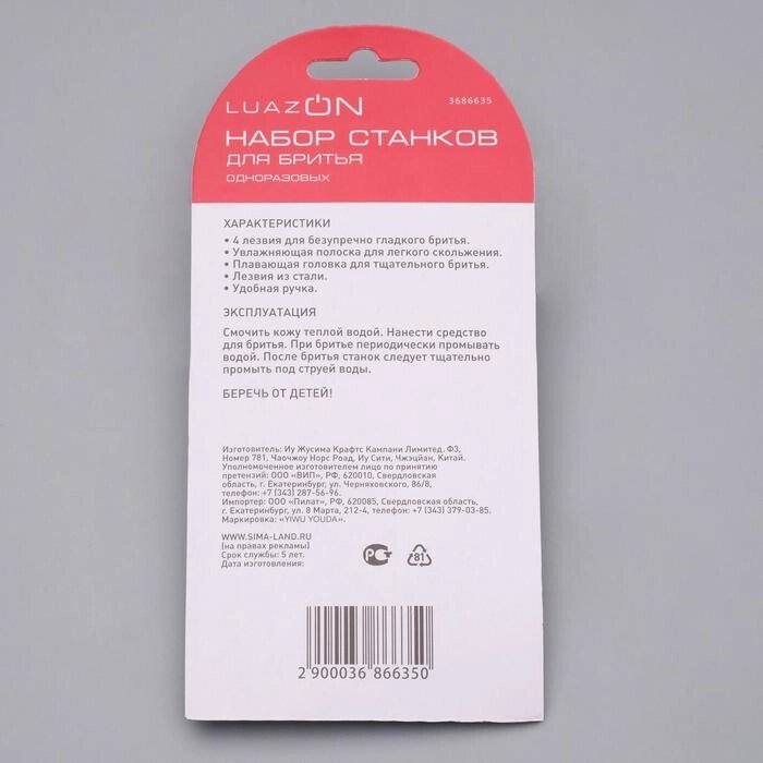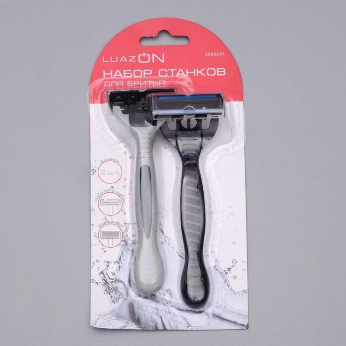 Бритвенные станки одноразовые LuazON, 6 лезвий, увлажняющая полоска, 2 шт