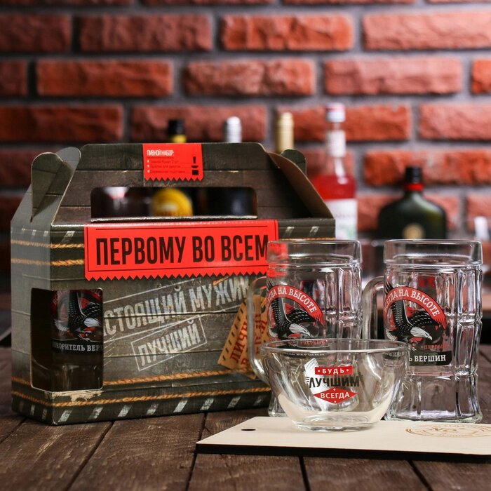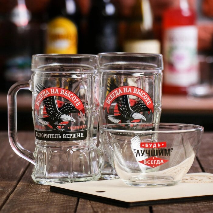Пивной набор посуды 'Покоритель вершин' бокал 2 шт. 330 мл, тарелка 150 мл, подставка