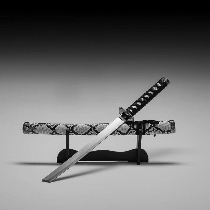 Сувенирное оружие «Катана на подставке», серые ножны под змеиную кожу, 70 см