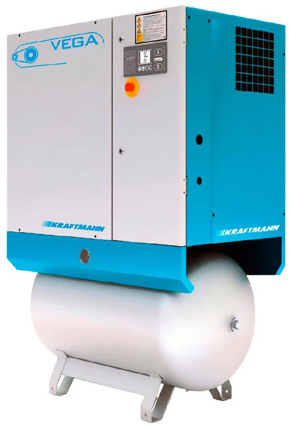 Винтовой компрессор, мощность 7.5 кВт, ременной привод, объем ресивера 270 л, производительность 870 л/мин, напряжение 380, вес 305 кг.