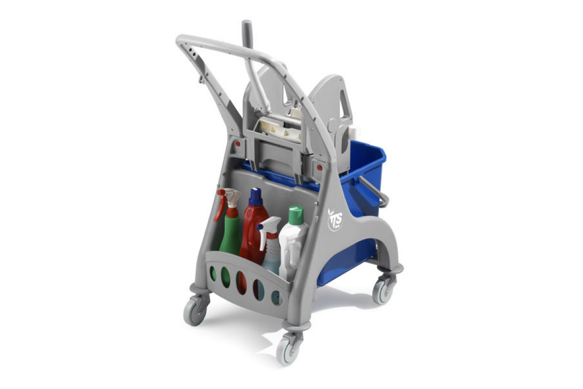 Уборочная тележка TTS Nick 00006244 позволяет организовать уборку малых и средних помещений. Оснащена бамперами, отжимом, системой поддержки ведра и рукояткой.