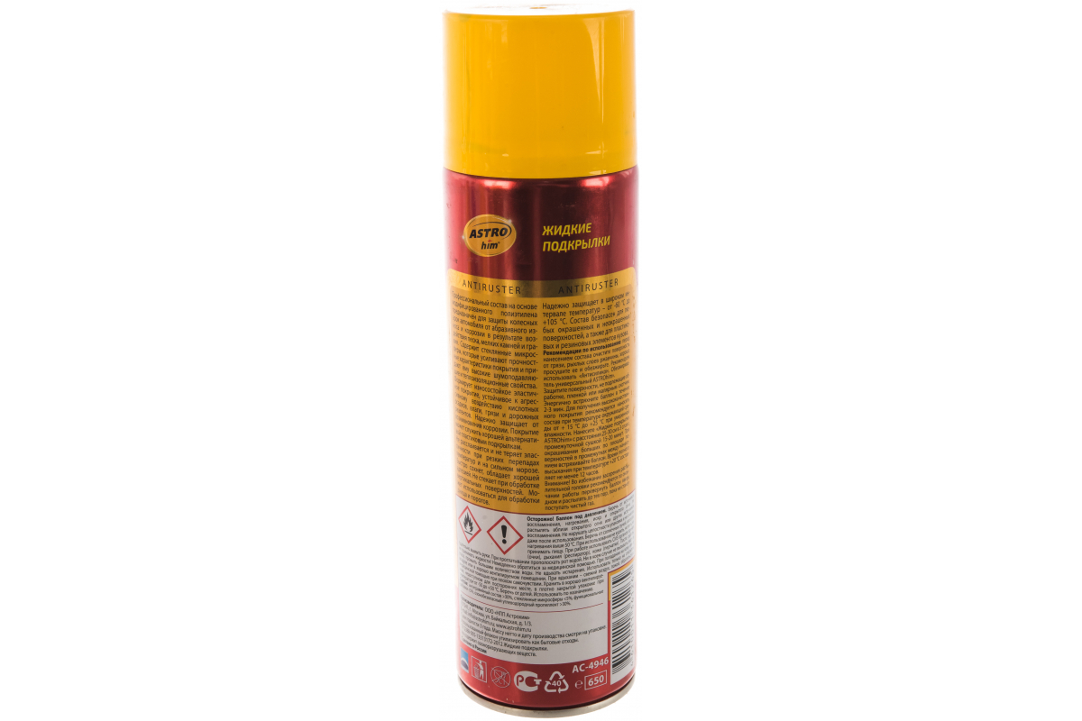 Жидкие подкрылки ASTROhim аэрозоль, 650мл AC-4946 используется для надежной защиты скрытых деталей автомобиля (пороги, корпуса дверей, стойки, лонжероны и т.п.) от коррозии.