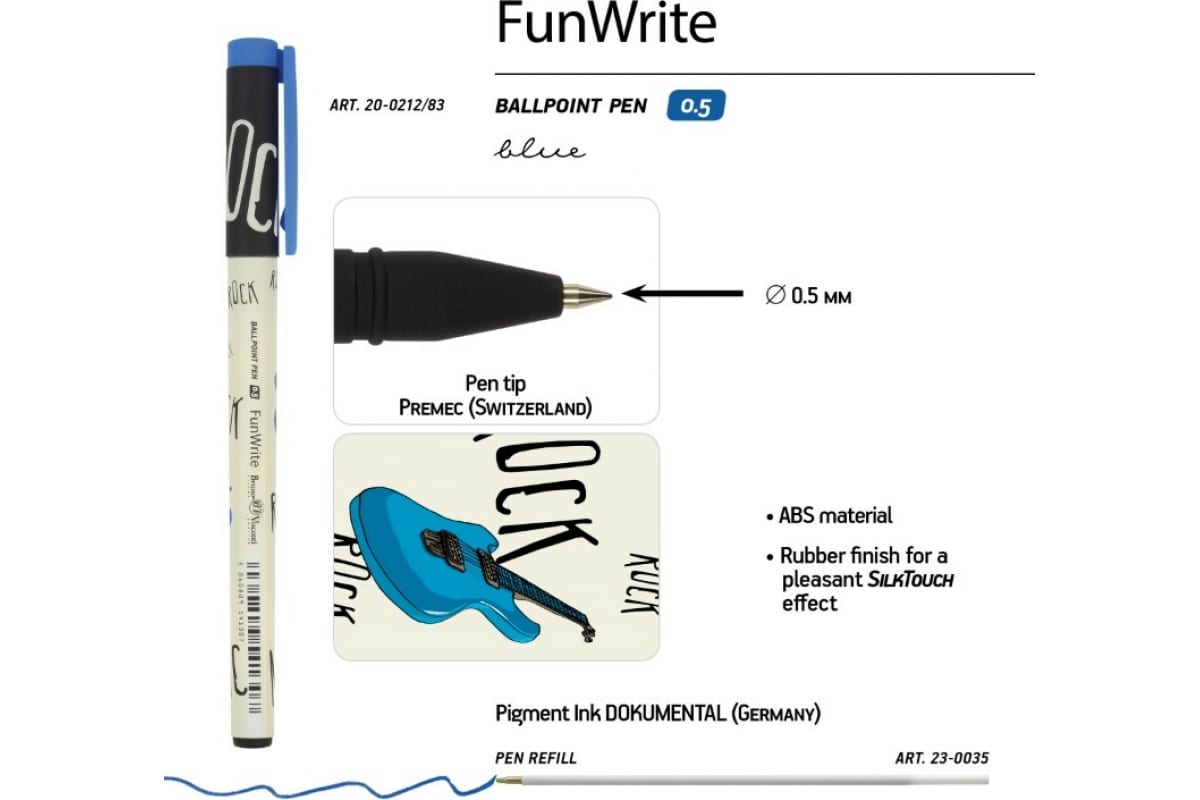 Шариковая ручка Bruno Visconti Fun Write Музыка Синяя гитара 0.5 мм синяя 20-0212/83 предназначена для письма и рисования.