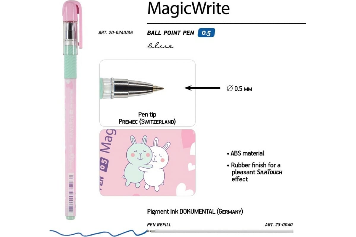 Шариковая ручка Bruno Visconti Magic Write Обнимашки Зайчики 0.5 мм синяя 20-0240/36 предназначена для письма и рисования.