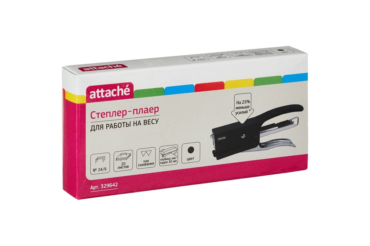 Степлер-плаер для работы на весу Attache №24/6 до 20 листов, черный 329642 предназначен для скрепления документов.