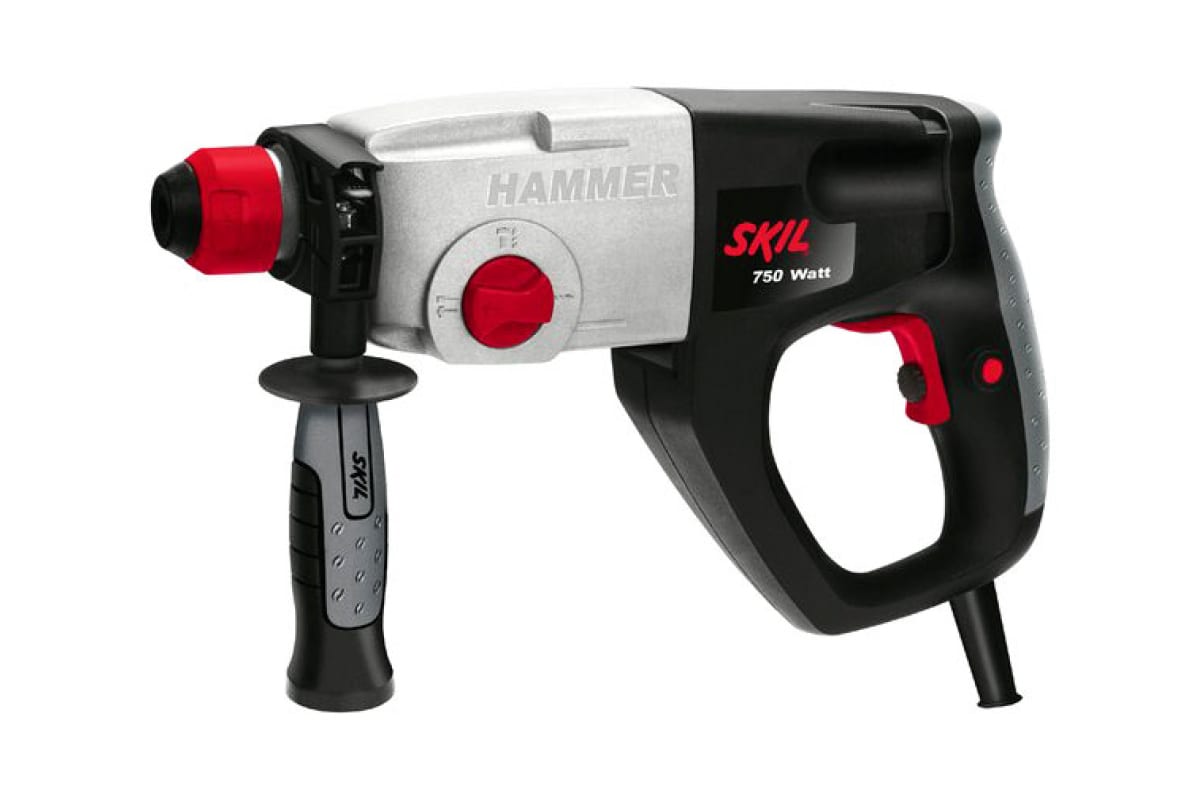 Перфоратор SKIL 1758LA F0151758LA имеет три рабочих режима: сверление, сверление с ударом и долбление. Кнопку "Пуск" можно зафиксировать для работы в непрерывном режиме. При заклинивании бура предохранительная муфта предотвращает поломку перфоратора. На основной и дополнительной рукоятках имеются резиновые накладки, что способствует комфортной работе пользователя.