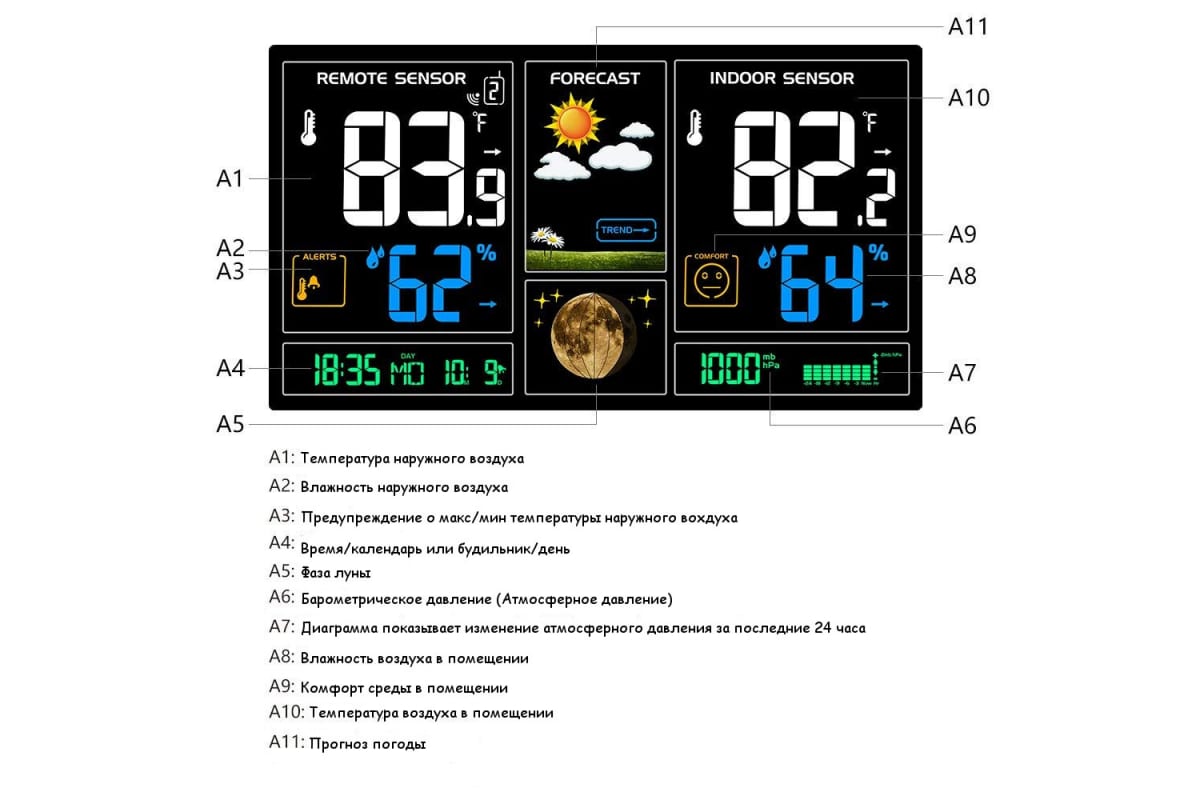Данная модель оснащена внешним датчиком, что обеспечивает измерение параметров как внутри, так и снаружи помещения.